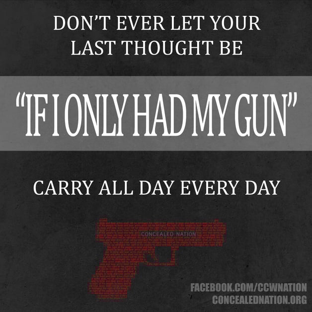 The simple fact is this: it can only take one violent crime to end your life. If that event happens to land on the one day you aren’t carrying your firearm, well, do I really need to say anything else?
