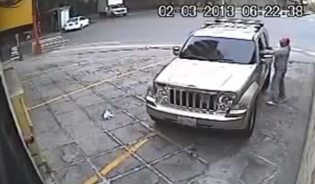 I am unsure whether the man being leadjacked was carrying his firearm on him, or if it was in his car. Either way, he was able to quickly retrieve it and fire at the bad guy.
