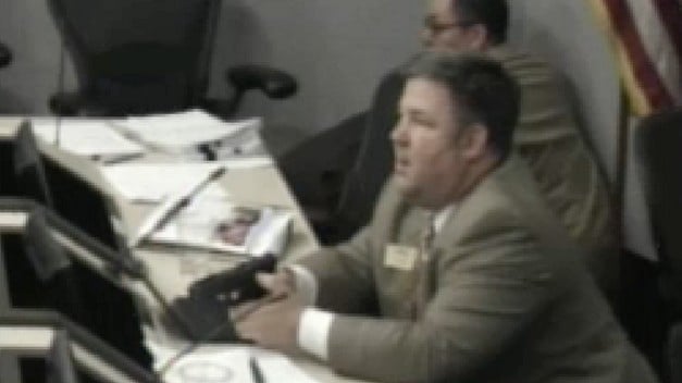 While these events were taking place outside the chambers, Council Member John Elder is seen on video (above) drawing his firearm and keeping it trained on the door while giving commands to others in the room to get down and take cover.