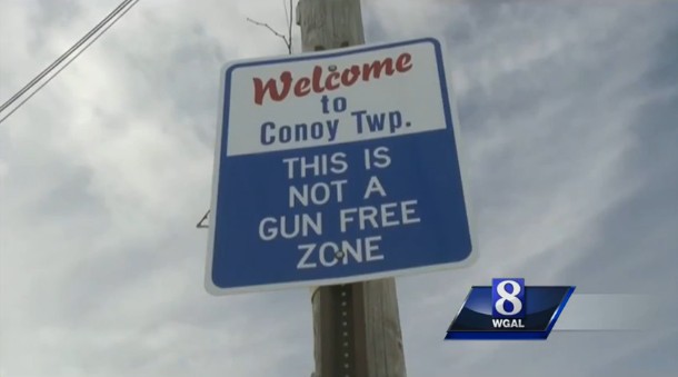 CONOY TOWNSHIP, PA — Officials have put up signs around their township alerting potential criminals that they are now in a “Not a Gun Free Zone”.