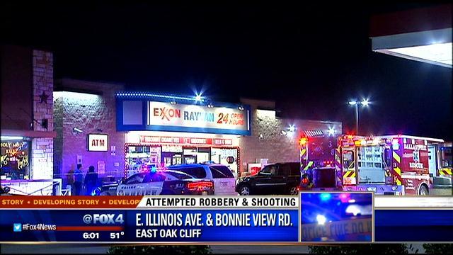 Police said the pair tried to rob the Exxon store near E. Illinois Avenue and Bonnie View Road around 11:30 p.m. Wednesday.