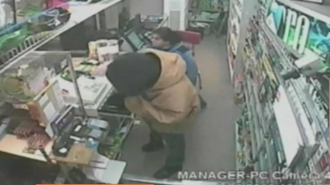 He still does not give up. At one point he agrees to leave, but then attempts to grab the cash on the way out. The clerk is having none of it. She tackles him, and he ends up leaving the store empty handed. The clerk still has possession of the pistol at the end of the video.