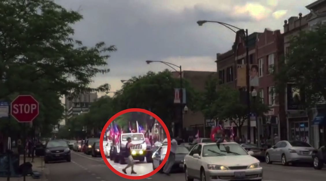 CHICAGO, ILLINOIS — In an incredibly bold move in broad daylight during a parade with no regard for anyone –including children– in the area, we see a thug try and take matters into his own hands, likely over some sort of trivial dispute. Because thug.
