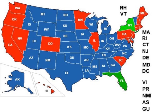 And boom! Here is our list covering the US. Personally, I’m covered in 31 states. Anything blue: you’re free to carry. Anything red, steer clear.