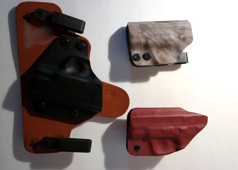 Three holsters, three different manufacturers, and three different manufacturing levels – can you visually tell the difference? (Clockwise: Lenwood Specter, Free State IWB, and Alien Gear Cloak Tuck)