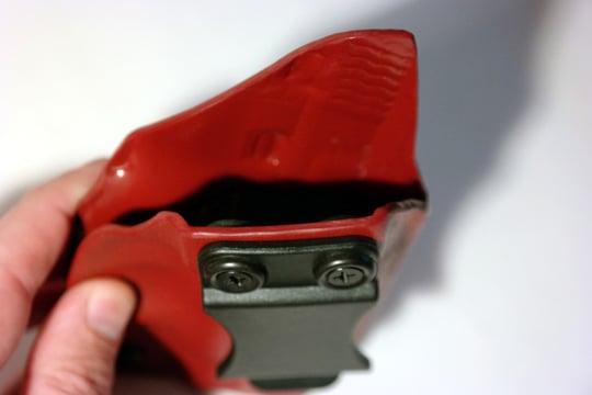 The biggest problem is a protrusion that covers a portion of the upper assembly. I first noticed it when I tried to switch my pistol from safe to fire at the range. The Kydex covers the safety lever. If you use a Glock, you probably wouldn’t notice a thing. For an M&P Shield .40 caliber, it’s noticeable.