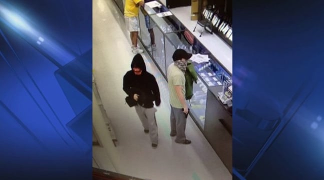 An eyewitness told 13 news he was shopping there when he heard a loud crash. He said two men had pulled down a section of weapons that had been chained together and were running out of the store with several stolen weapons.