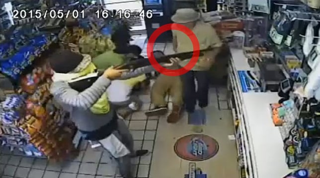 While we don’t know the identity of the armed customer, my money is on the elderly man in the back. At two points during the surveillance video provided, it seems that he may have been reaching for his firearm and then ultimately making the decision not to draw.