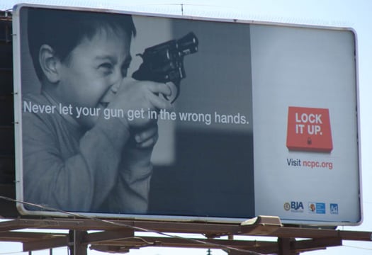 The anti-gun agitprop was created by the “National Crime Prevention Council,” ye olde McGruff the Crime Dog folks, funded by the Bureau of Justice Assistance. It’s distributed by The Ad Council, a propaganda organ of the ruling elite thinly disguised as a non-profit; enabled by air time, print and billboard space donated by the mainstream media.