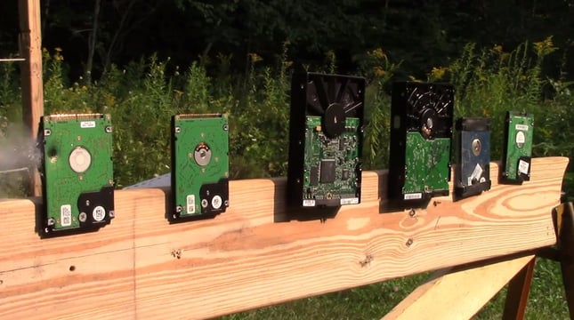 A change of pace from our normal routine. We found a bunch of old desktop and laptop hard drives, and what better way to ensure no one gets our data?