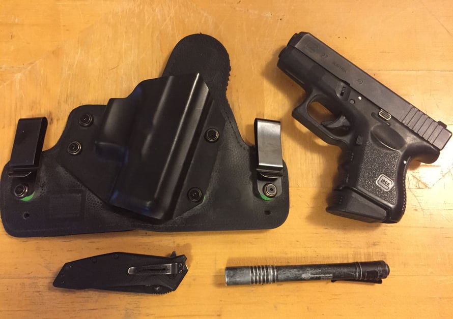 1. I carry a Glock 27, with the Pearce pinky extension, and Hornady 165gr Critical Defense rounds.