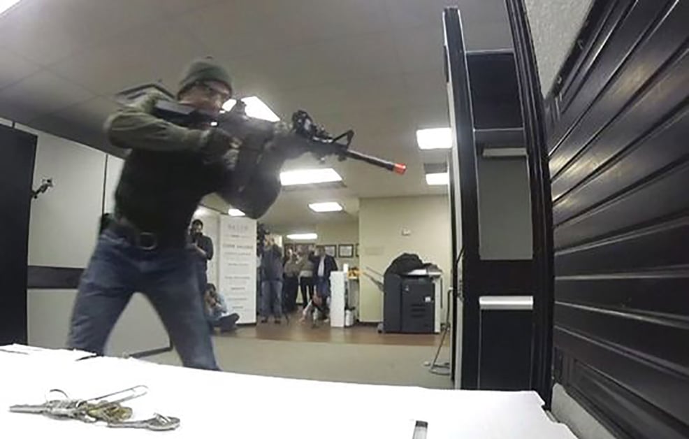Our “bad guy with a gun” was Shawn Clary, a SWAT team member and tactical instructor with 22 years experience.