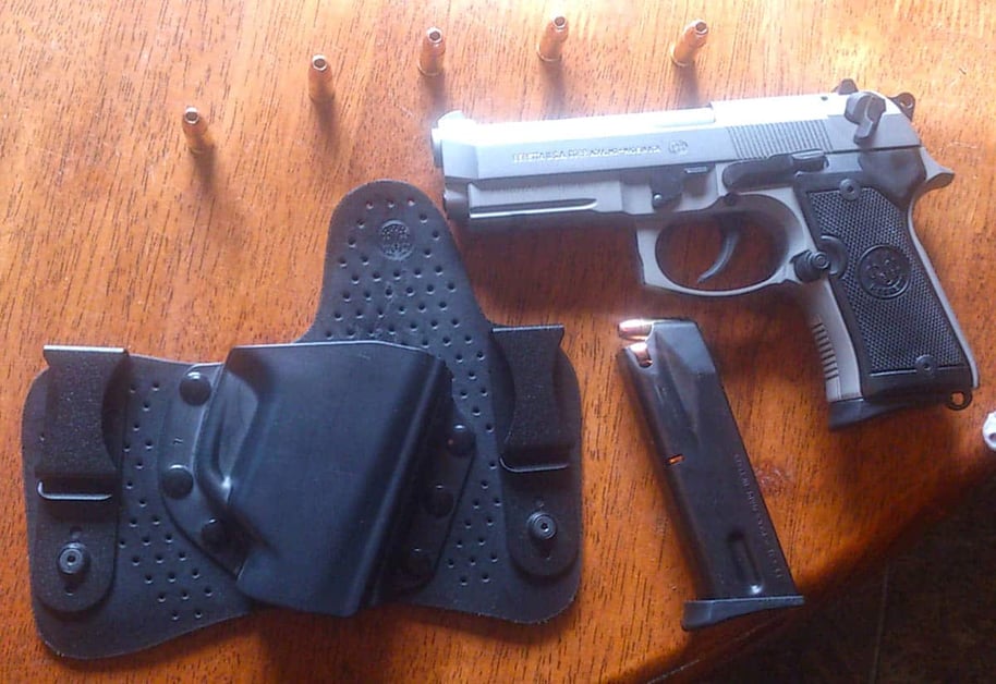 I carry this gun for the accuracy, shooting comfort and reliably of a full size M92 but put into a smaller lighter package. The holster makes the gun disappear with great concealment and comfort.