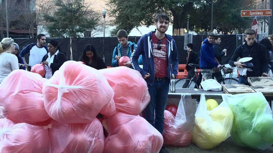 AUSTIN, TEXAS — Before University of Texas President, Gregory L. Fenves announced the adoption of a new policy allowing the carrying of a concealed handgun on campus on February 17th, GunFreeUT sponsored an event on the Austin Campus of the University of Texas on February 3, inviting “each graduate student to blow up a balloon as a visible “vote” for or against implementation of Campus Carry (SB11) at UT.”