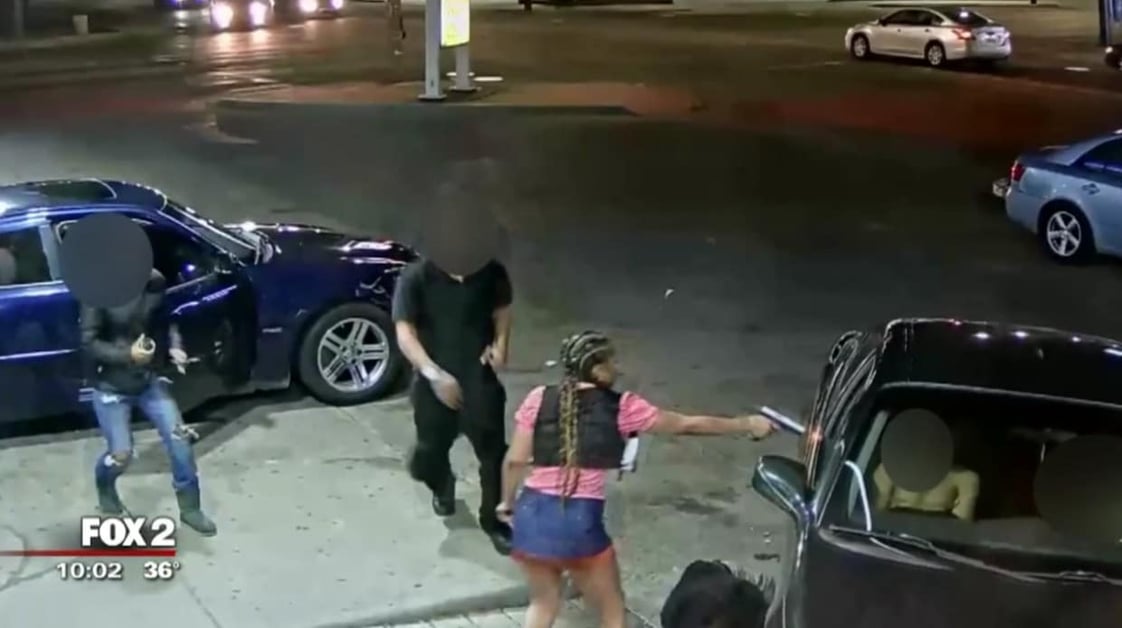 DETROIT, MICHIGAN — This woman is going places. Like jail. Police are looking for the public’s help to identify this female shooter after she was captured on HD surveillance video firing shots at a vehicle in a gas station parking lot, striking the driver multiple times.