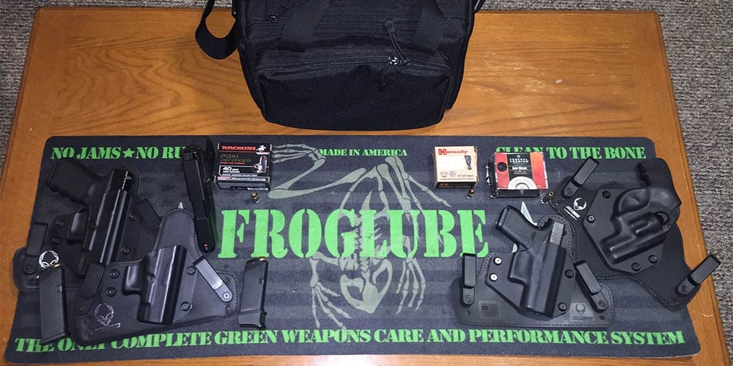 A stock Glock 42 loaded with Hornady Critical Defense.380 Auto 90 Grain FTX® Jacket Hollow Points carried in an Alien Gear Cloak Tuck 3.0 IWB Holster, and a Ruger LCR .38 loaded with Federal Premium Low Recoil 110 Grain Hydra-Shok® Jacket Hollow Points worn in you guessed it an Alien Gear Cloak Tuck 2.0 IWB Holster because when something works as great, and is as comfortable to wear as the Alien Gear’s holsters you stick with them.