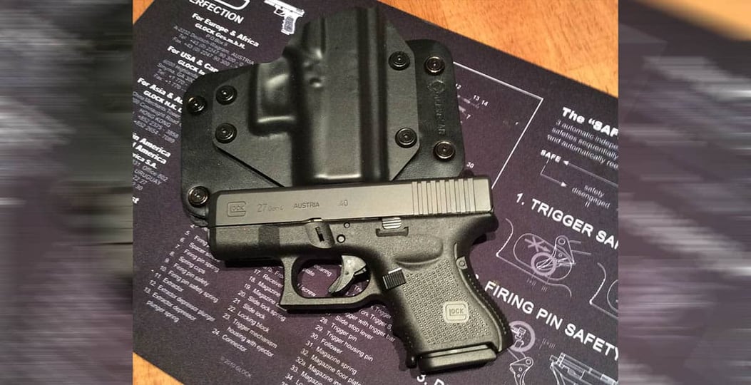 I carry a Glock 27 in a Alien Gear OWB holster under baggy shirts, very comfortable and easy to get to.