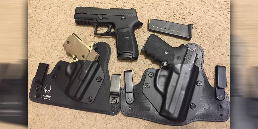 1) My main everyday carry is a SIG P239 9mm, sig X-ray 3 night sights w/ a hogue grip. It’s loaded with Federal HST. Sometimes I carry my SIG P320 .40cal compact w/night sights & loaded with federal HST. My wife’s carry is a SIG P238 loaded with federal HST.