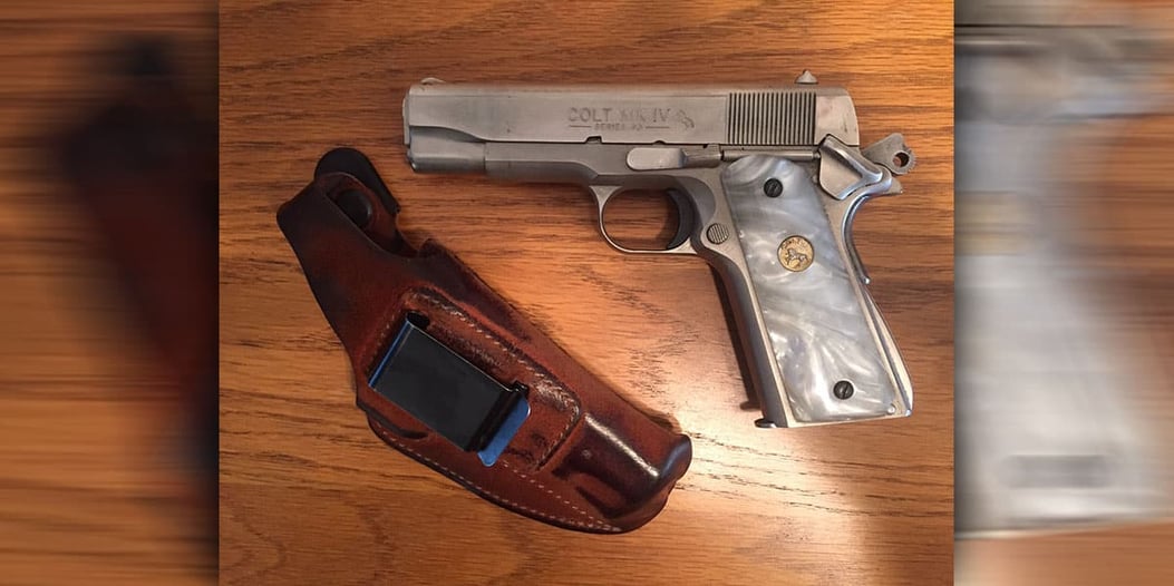 It’s a Colt Combat Commander Series 80. I carry it in a Bianchi inside the waist holster. I have had it for over 25 years now. I carry a 45 because I think it’s just silly to have to shoot twice.