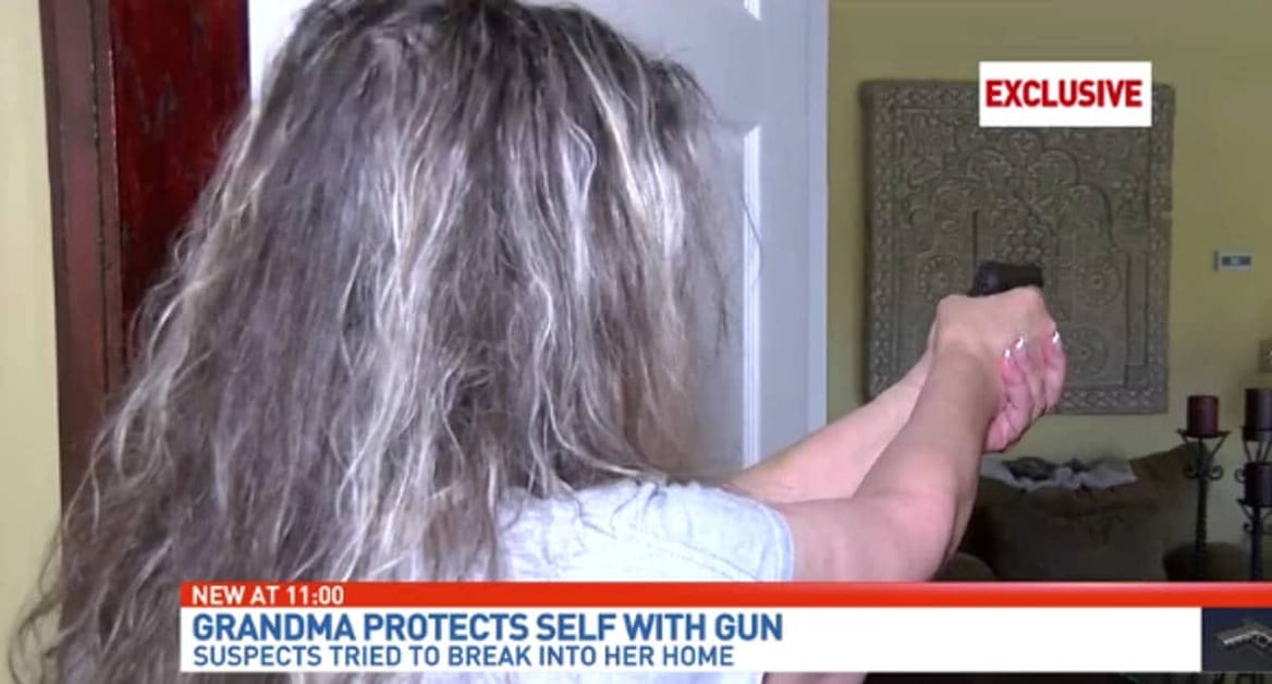 As CBS 12 reports, faced with nowhere left to flee, she took out her home defense handgun and levelled it at the first intruder who came through the door.