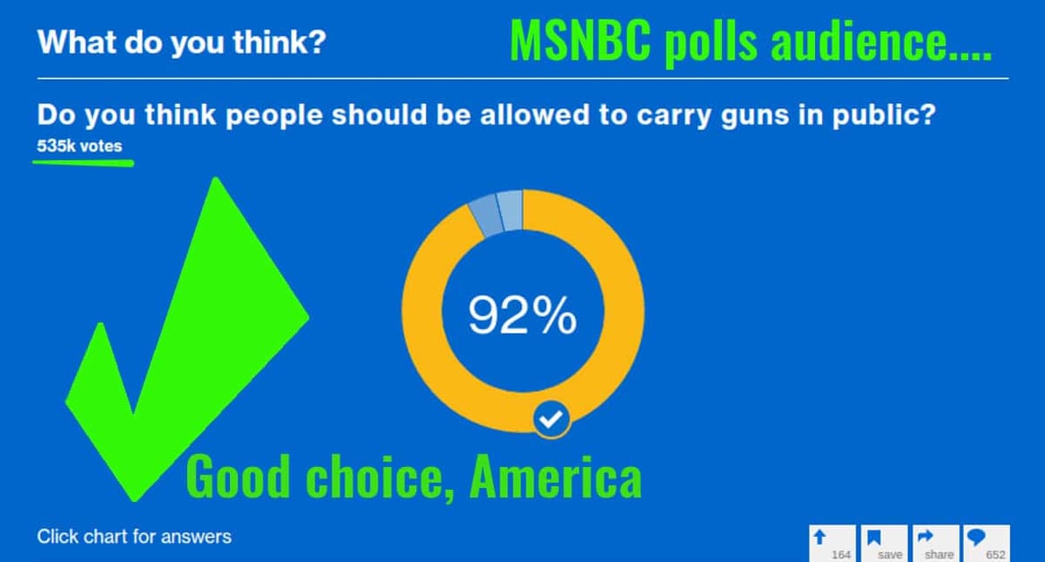 A recent MSNBC poll that garnered nearly 535,000 responses is making the rounds on the internet. In it, a traditionally liberal news outlet asked whether or not the public felt comfortable with guns being carried openly.