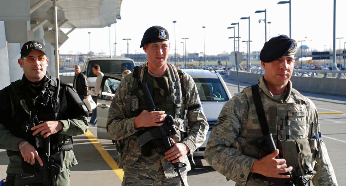 Thankfully, that’s beginning to change. The DoD still maintains an ironclad control over who’s supposed to be armed — but they can’t control bad guys. And bad guys, as we’ve seen, don’t care what the DoD has to say about it.