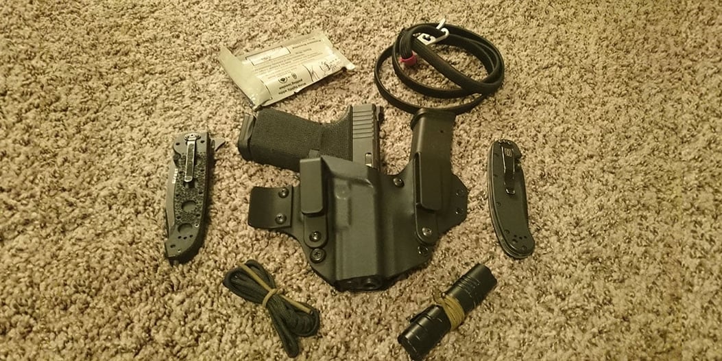 – Other items include: rats tourniquet, swat-t, CRKT and rats knives, streamlight protac 1l, and a homemade 550 Flexi cuff/restraint.