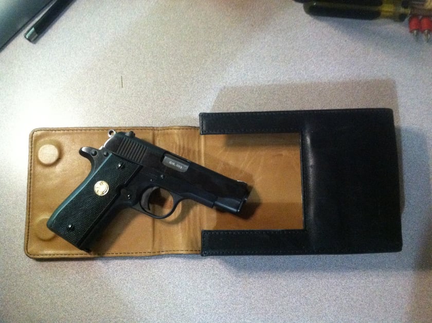 This is my Colt MK IV Government Model .380, and my Sneaky Pete “Carry Concealed in plain sight” belt holster.