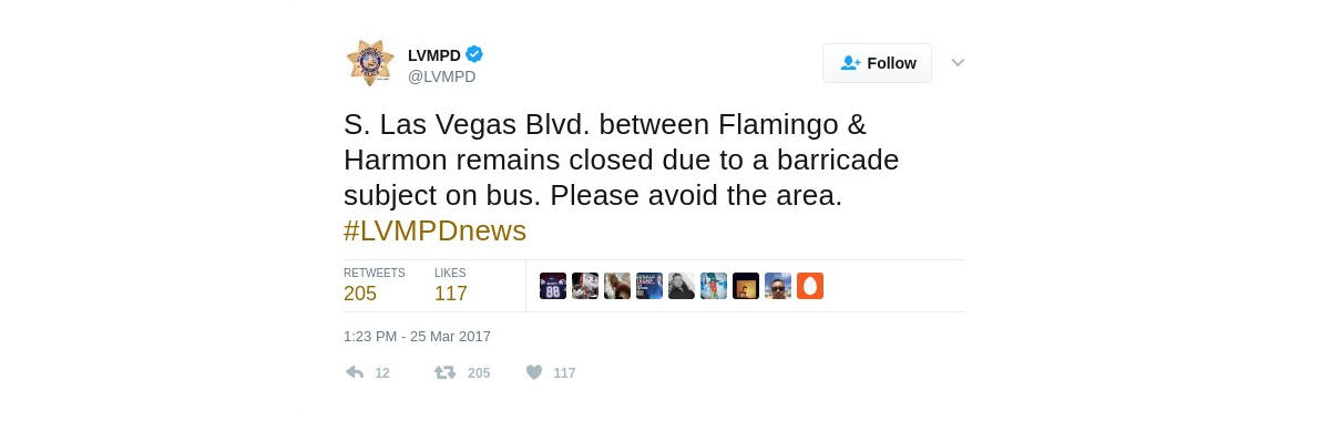 Las Vegas police took to their twitter account to issue public notices that the strip was closed and they recommended all those in the area shelter in place.