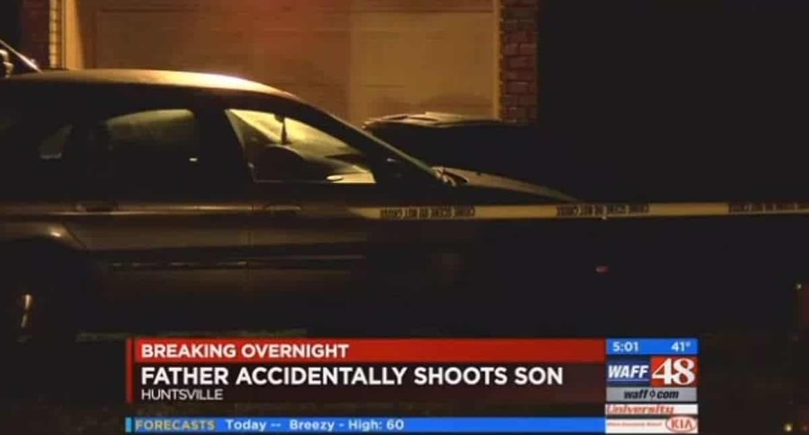 HUNTSVILLE, ALABAMA — The very worst scenario played out for a father after he mistook his son for a burglar when his son came in through the door at 1 a.m. The son was critically shot by the father. Police took him to a hospital where he remains in critical condition.