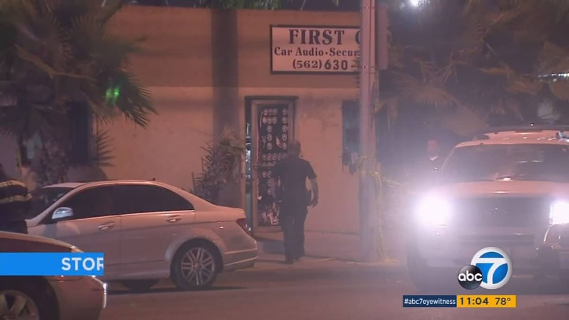The shooting was reported about 8:15 p.m. in the 8800 block of Rosecrans Avenue, according to the Downey Police Department. Officers arrived to find two men dead inside First Class Car Audio.