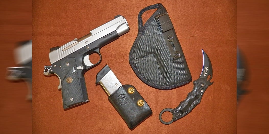 I carry a Sig Sauer C3 .45 ACP in a Fusion Holster. I carry the C3 because a 1911 is one of the best combat handguns in history with the stopping power of the .45 ACP and Sig’s commander slide on an officers frame seems to be a perfect fit for a concealed carry gun. The Fusion Holster is the only holster I have found that fully supports a 1911 inside the waist band comfortably without having to constantly re-adjust.