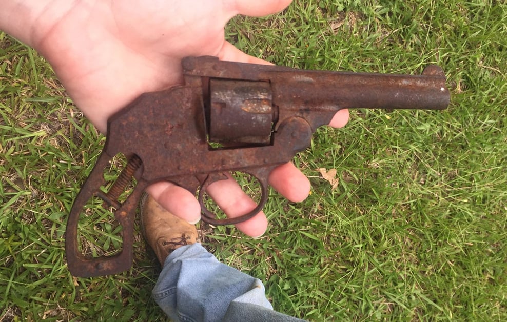 A reader sent us an email with some photos of an old revolver that she found in her yard, and she’s itching to find out more information about it.