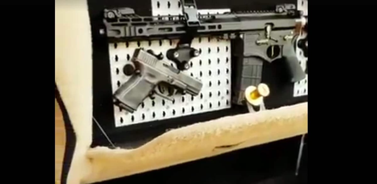 The car seat in the above video has stored away inside it both an awesome primary and secondary firearm. Someone did some awesome work attaching a home for those guns at the bottom of the seat. It’s pretty flipping awesome.