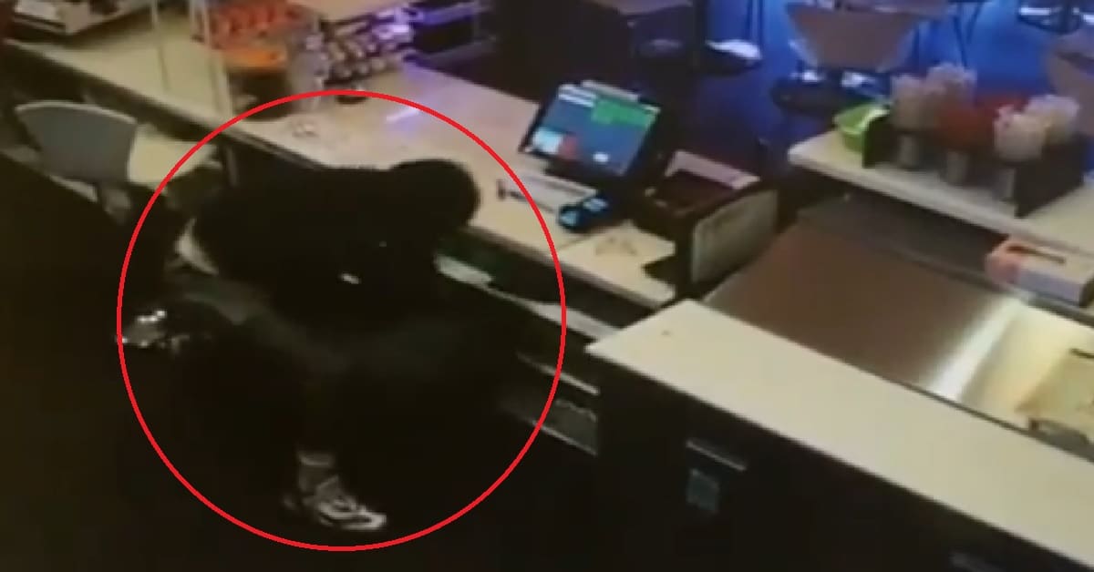 Two of the thugs waited in the getaway car while one came in the store, armed, and put a gun up against the owner.