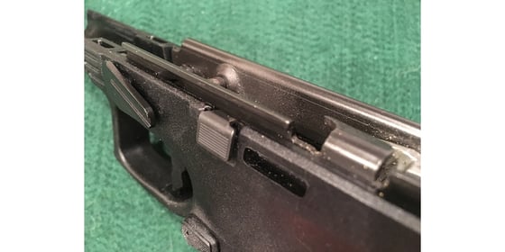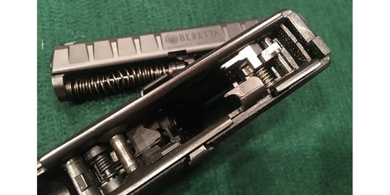Rack the slide and make sure it locks back. Then use the slide stop to release it. Everything should operate smoothly and feel grit-free.
