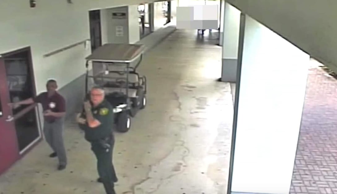 Newly released surveillance footage appears to support the Broward sheriff’s account that a campus deputy rushed to the Parkland high school building where a mass shooting was unfolding — but never entered to engage the gunman.