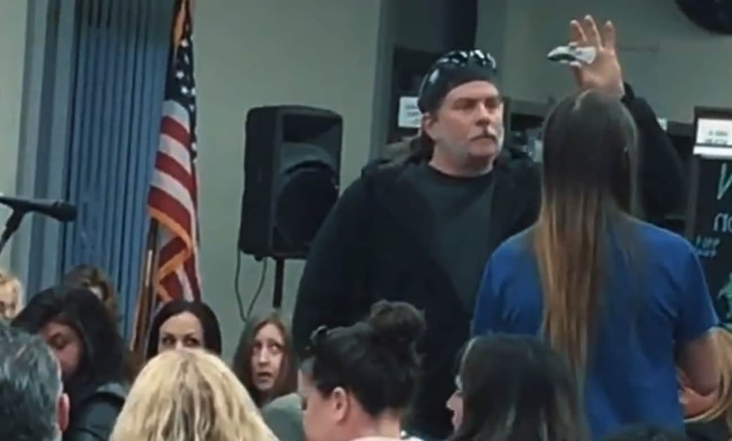 The video commentator speaks of a switchblade, but it doesn’t look like such a knife in the video. Regardless, concern was raised when a parent pulled out this knife while making a point that, if SHTF, police will take time to respond and damage can be done in the meantime.