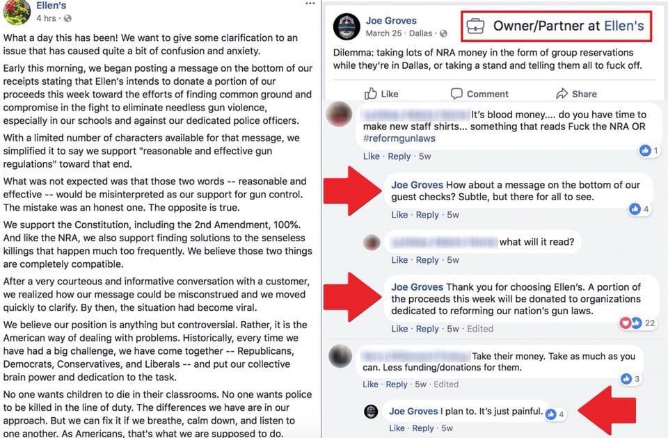 Someone was apparently able to grab a screenshot from one of the owner’s FB profiles, and it seems that it was indeed a plan against gun owners as well as the NRA. Or maybe just the NRA. Either way, it seems that Joe doesn’t like the NRA. User Jason Bright provided the following screens: