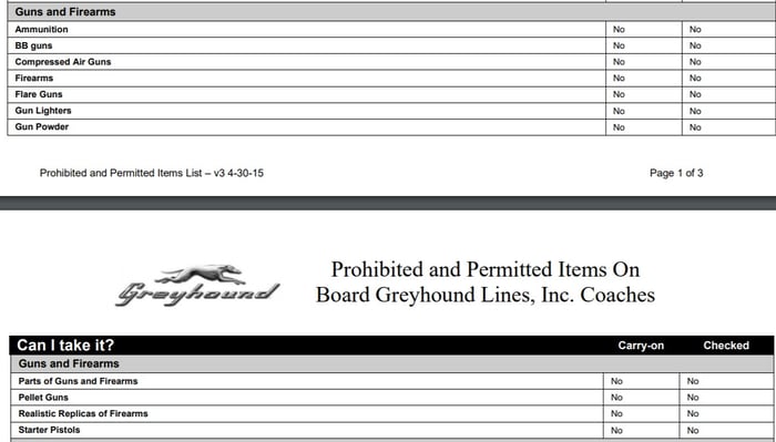 According to the Greyhound website, they don’t allow firearms as carry-on or checked baggage. If they did, they might not have a damaged bus at the moment.