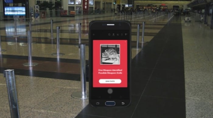 The company is called Royal Holdings, and the device is named SWORD. In a nutshell, the device can attached to a few different model smart phones that are already available. With this connection, the user can scan people in real-time to see if they are concealing firearms, weapons, and other items that they are looking for.