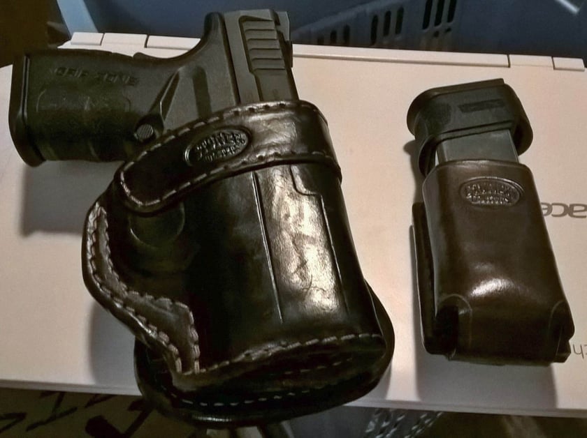 2. My everyday carry holster is a leather paddle holster from Stoner Holster. This holster provides the comfort and versatility to make everyday carry easy. I carry a leather magazine pouch, also from Stoner Holsters, with a spare 13 round magazine.