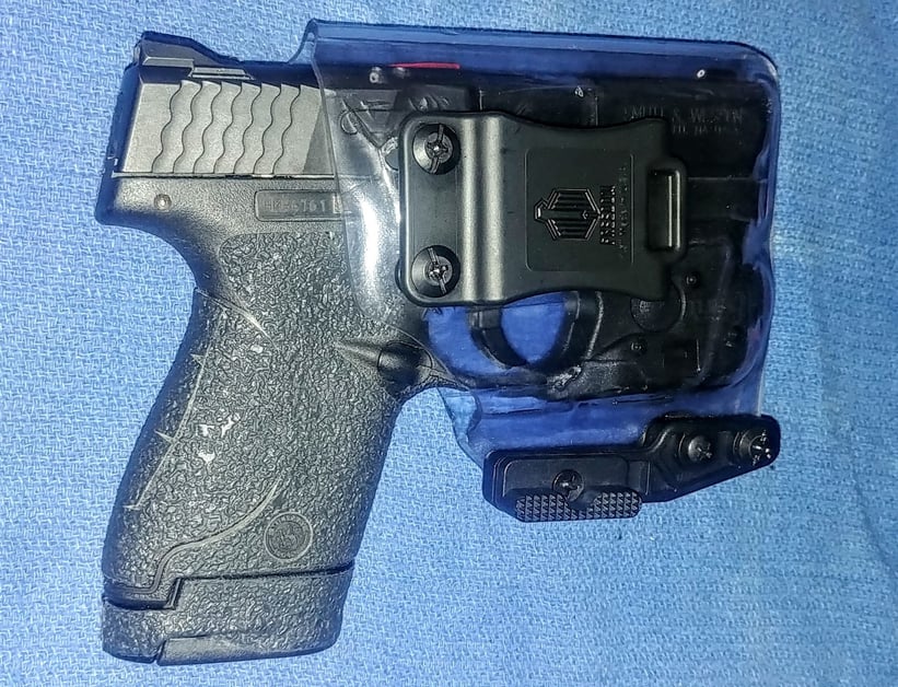 S&W Shield 9mm with Ameriglo front sight and Streamlight TLR-6. Holster is by Freedom Holsters. I carry this gun because I shoot a lot of 9mm and I shoot it well. I use this AIWB setup because there’s no printing (due to the claw), cant is adjustable, it has a full sweat guard, adjustable retention, it’s comfortable (due to the single clip), and the ride height is perfect for a fast draw.