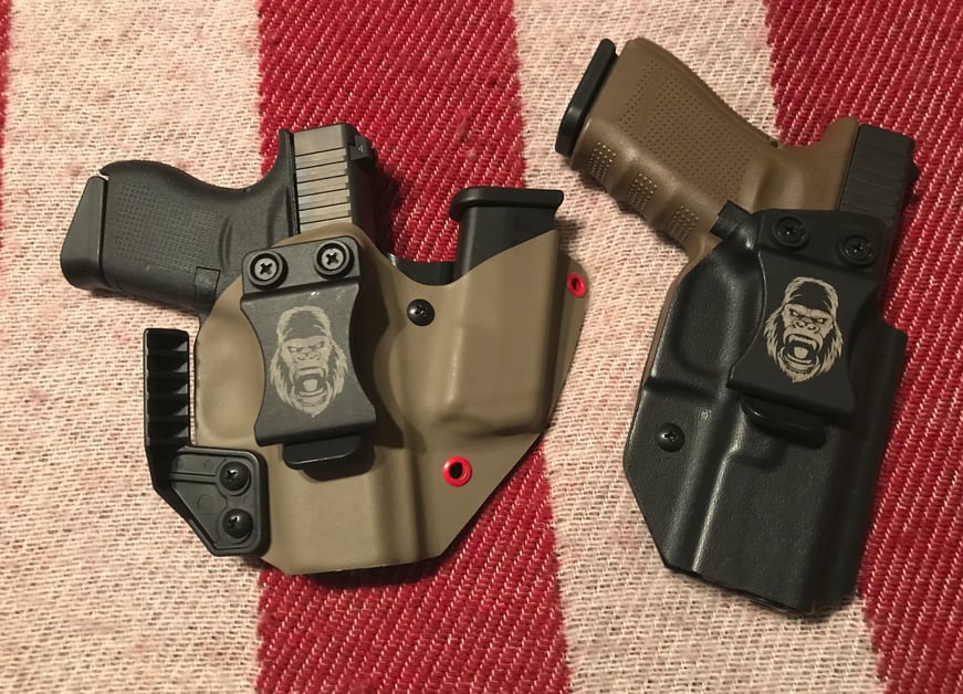 Glock 43 in a Silverback Gun Works Oozaru or a Gen4 Glock 19 in Silverback Gun Works Veil. I carry Glocka because they always go bang when I need them to, and never do when I don’t want them to. I shoot well with them, and they’re fairly inexpensive for the amount of reliability they offer.