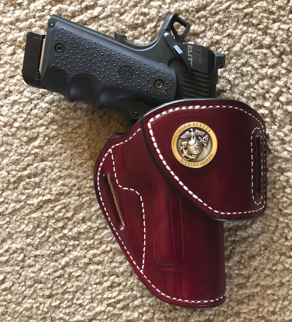 Springfield Armory RO Elite Operator .45 ACP in a Tucker Gun Leather HF1 holster. Awesome quality gun that is dependable and the holster not only looks good but is very comfortable for EDC.