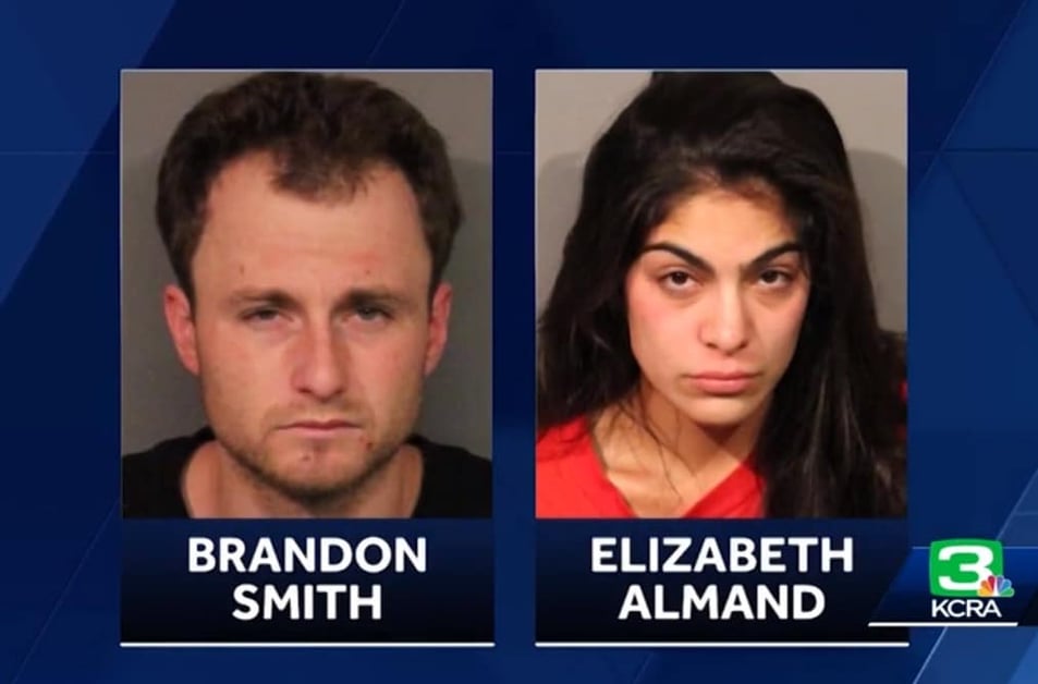 Brandon Smith, 25, and Elizabeth Almand, 23, were leaving a grocery store with some stolen merch when the guard approached them.