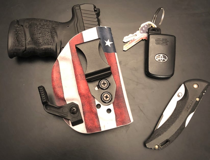 | I carry a Walther PPS M2 9mm in a Vedder Light Tuck. I also carry a Buck Bantam knife for general utility. I love the ergonomics that Walther incorporates into all of their products and it is slim enough to easily conceal under just a t shirt. |