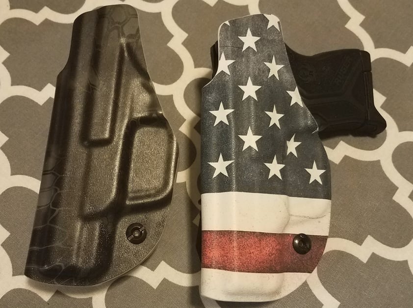 Ruger LCP. 380 with the American flag holster from Vedder Holsters… sometimes the black Vedder Holster too.