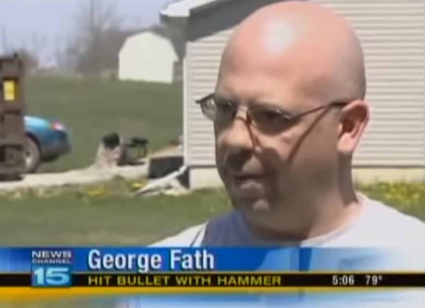 The man in the video below found a .22 cartridge in his yard, and didn’t want his kids finding it and possibly getting injured. So, he grabs a hammer and disposes of it. Into his gut.