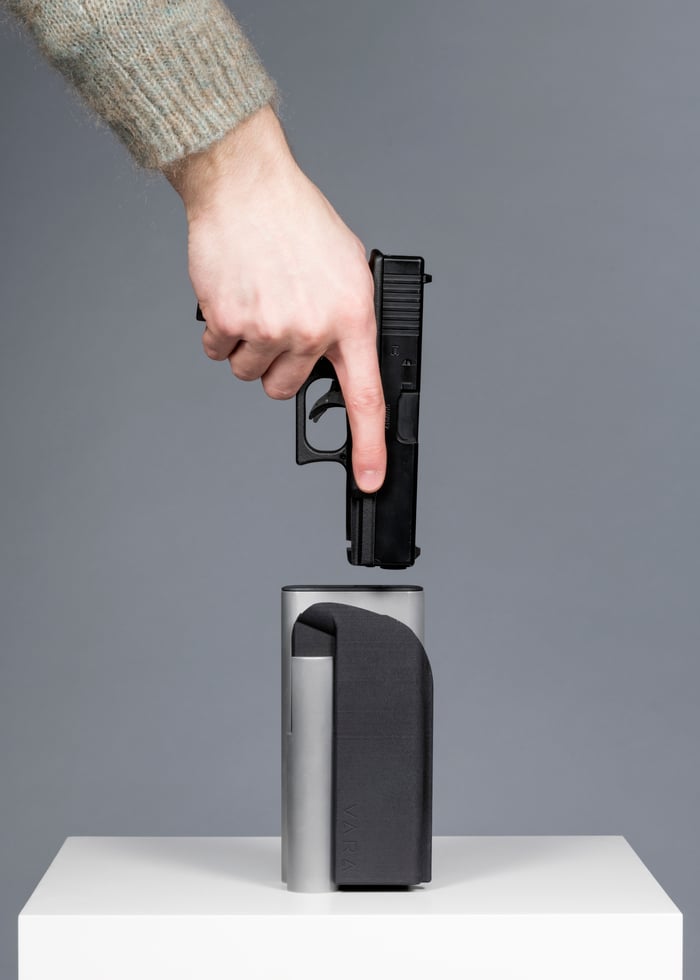 Designed for immediate access and safe storage, Reach is fast as a holster and secure as a safe. It uses an ALS-style fingerprint sensor for access under 0.5 seconds, unlocking for authorized users when you naturally grab the gun and draw.